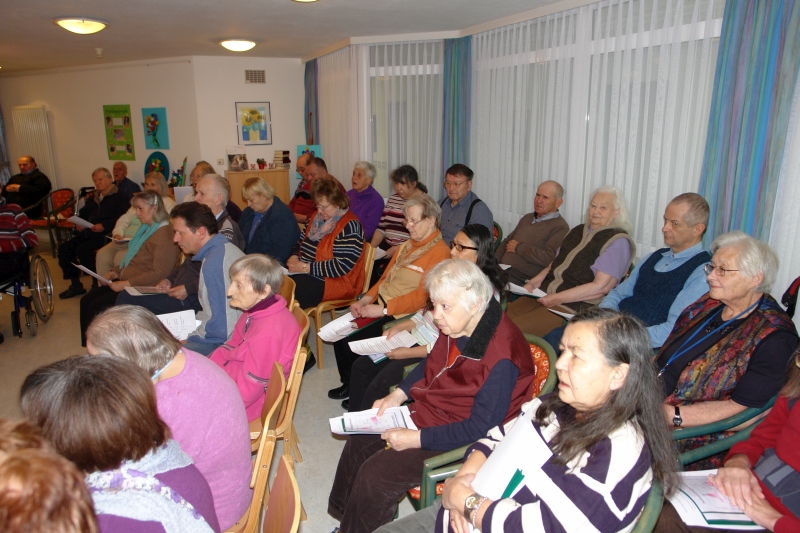 Da Pater Ionutz Diözesanpfarrer werden möchte, hat er sich entschlossen aus der Ordensgemeinschaft der Franziskaner-Minoriten auszutreten und muss daher leider unseren Pfarrverband verlassen. Ihn ersetzt der ebenfalls sehr beliebte Pater Gabriel Budau. Trotz Terminflut und sichtlich erkältungsgeschwächt ließ es sich Pater Gabriel nicht nehmen gleich selbst den Weihnachtsgottesdienst bei uns im Haus abzuhalten, unterstützt von unserem lieben Pastoralreferenten Michael Kohl, der ja regelmäßig bei uns verkehrt und Bewohner und das Haus bereits bestens kennt. Unser Raum war wieder sehr schön und einladend geschmückt. Sandra hat die gemeinsamen Lieder auf dem Keyboard begleitet und der Selberdinger Dreigesang hat wunderschöne Lieder ausgesucht und zum Besten gegeben. Die zahlreich erschienenen Bewohner haben ihre selbstgeschriebenen Fürbitten vorgetragen und fleißig mitgesungen. Zur Belohnung gab es für jeden Anwesenden ein von Pater Gabriel gesegnetes Herzerl, das man sich als Glücksbringer zum Beispiel an den Schlüsselanhänger machen durfte. Eine schöne Geste - wir freuen uns auf ein Wiedersehen!
